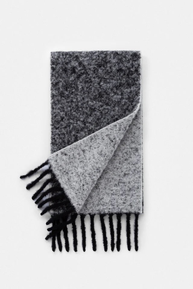 THE INOUE BROTHERS..."TWO COLOUR WOOLLY SCARF / BLACK/WHITE"