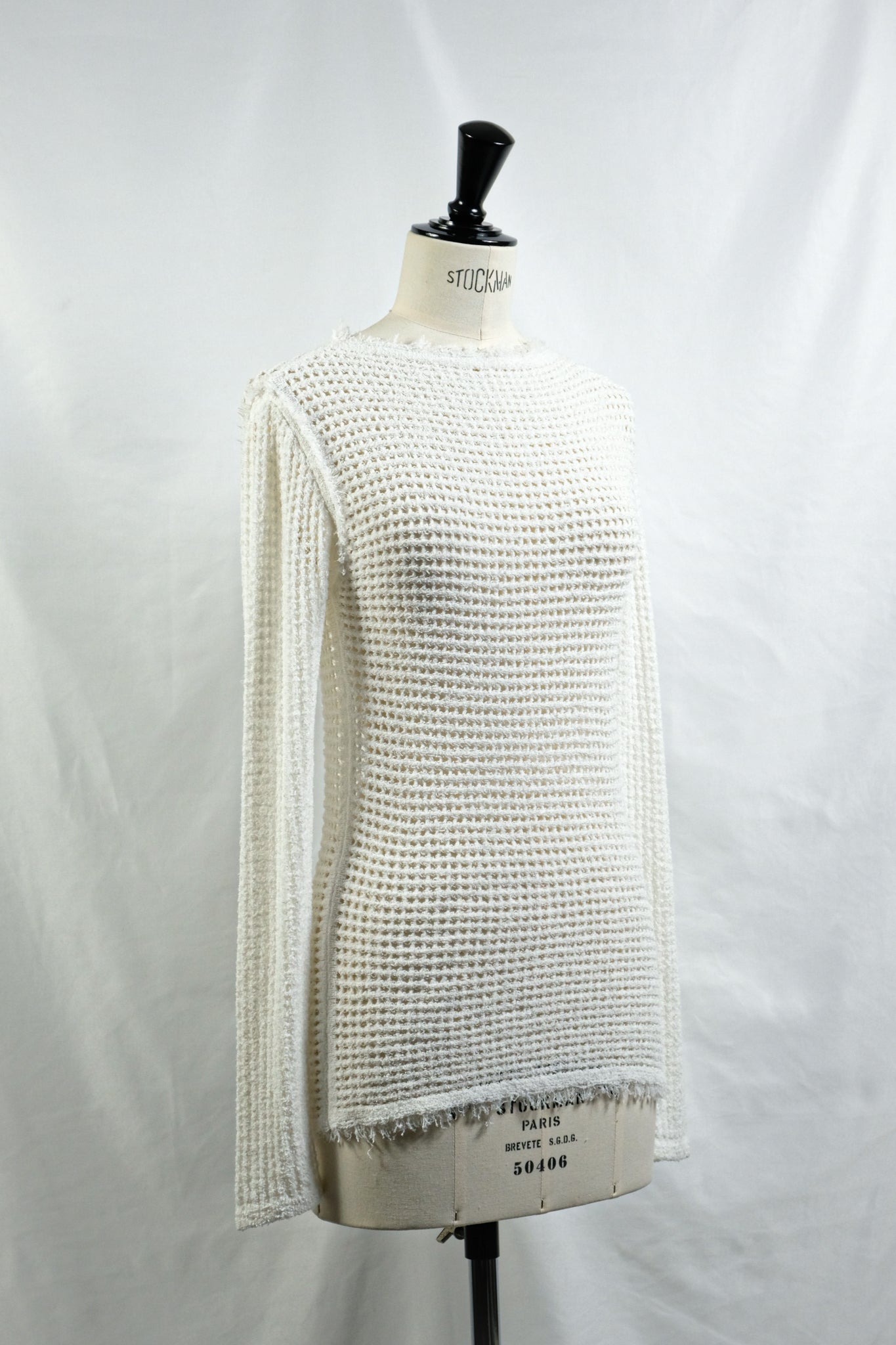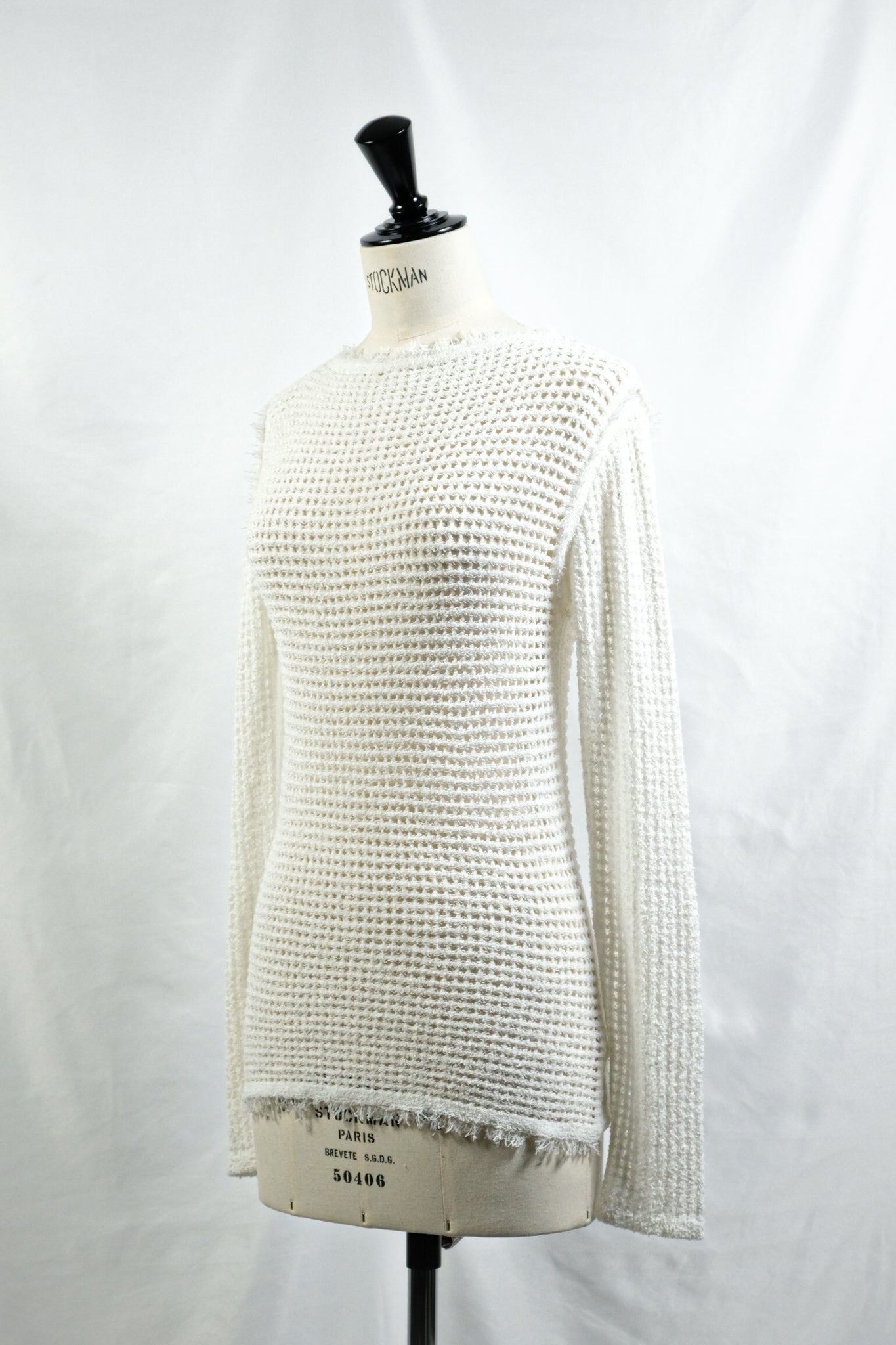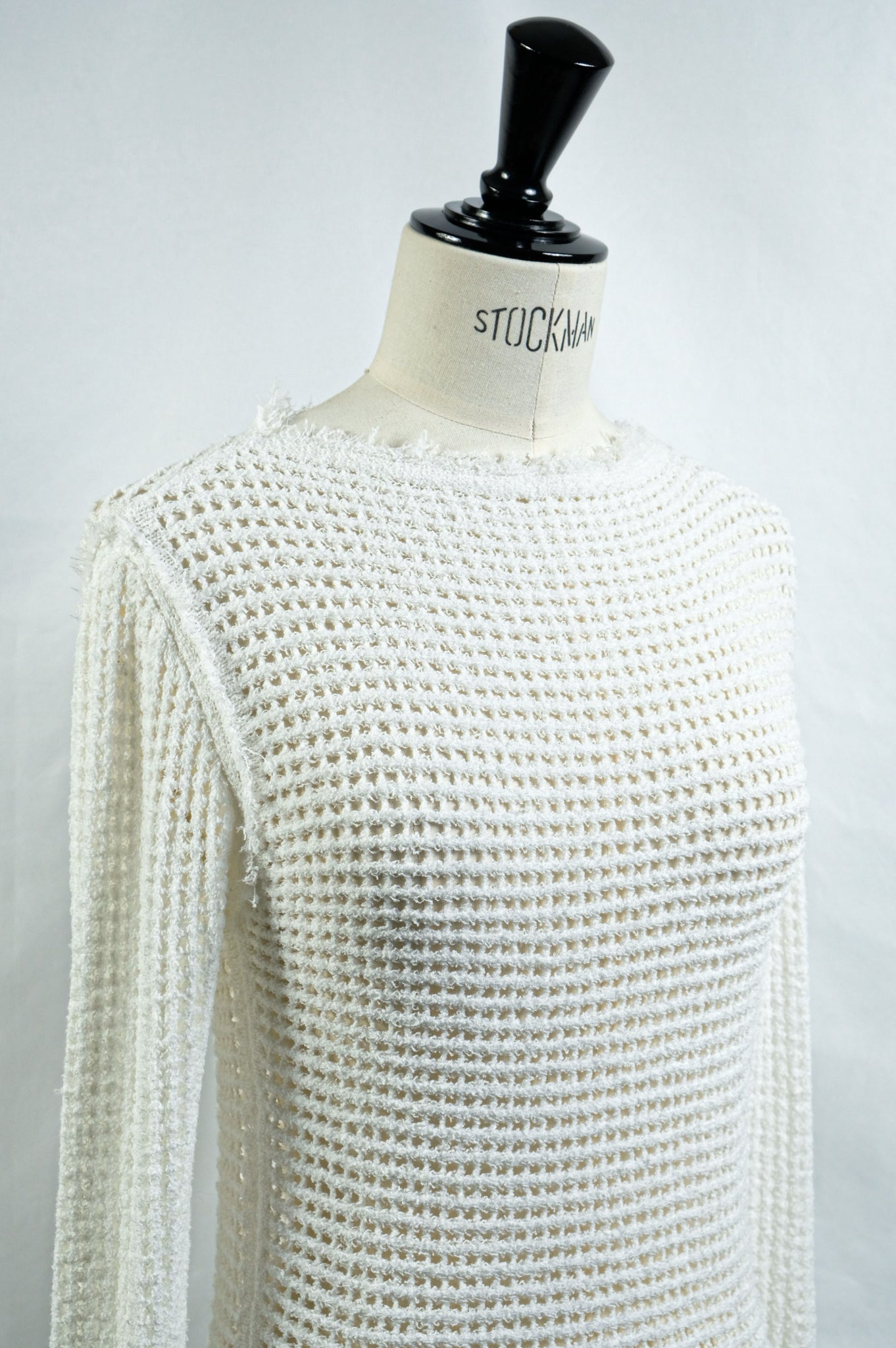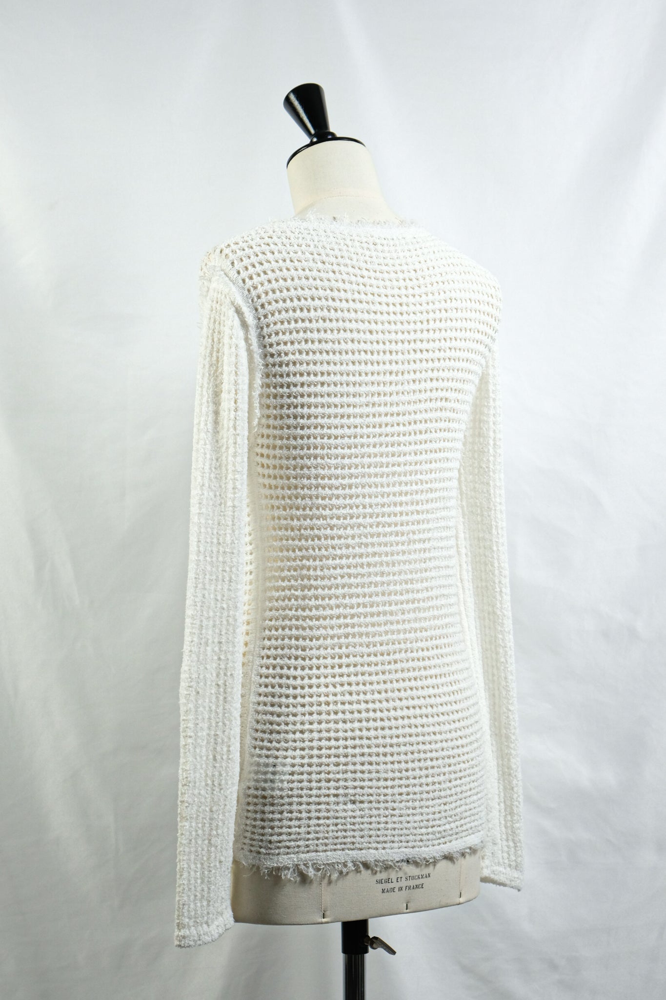 リネン混のループヤーンでメッシュ編みしたニット。
