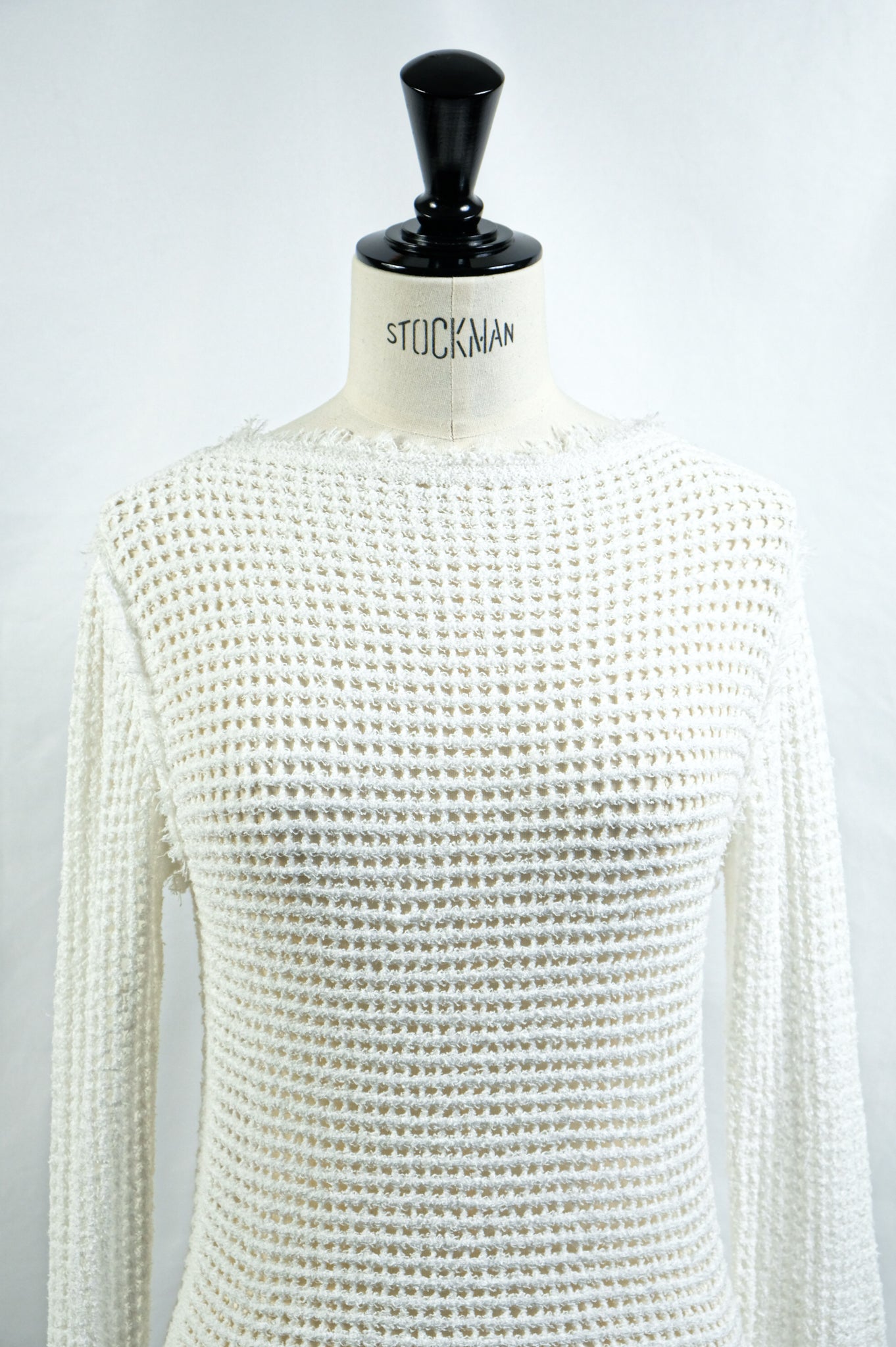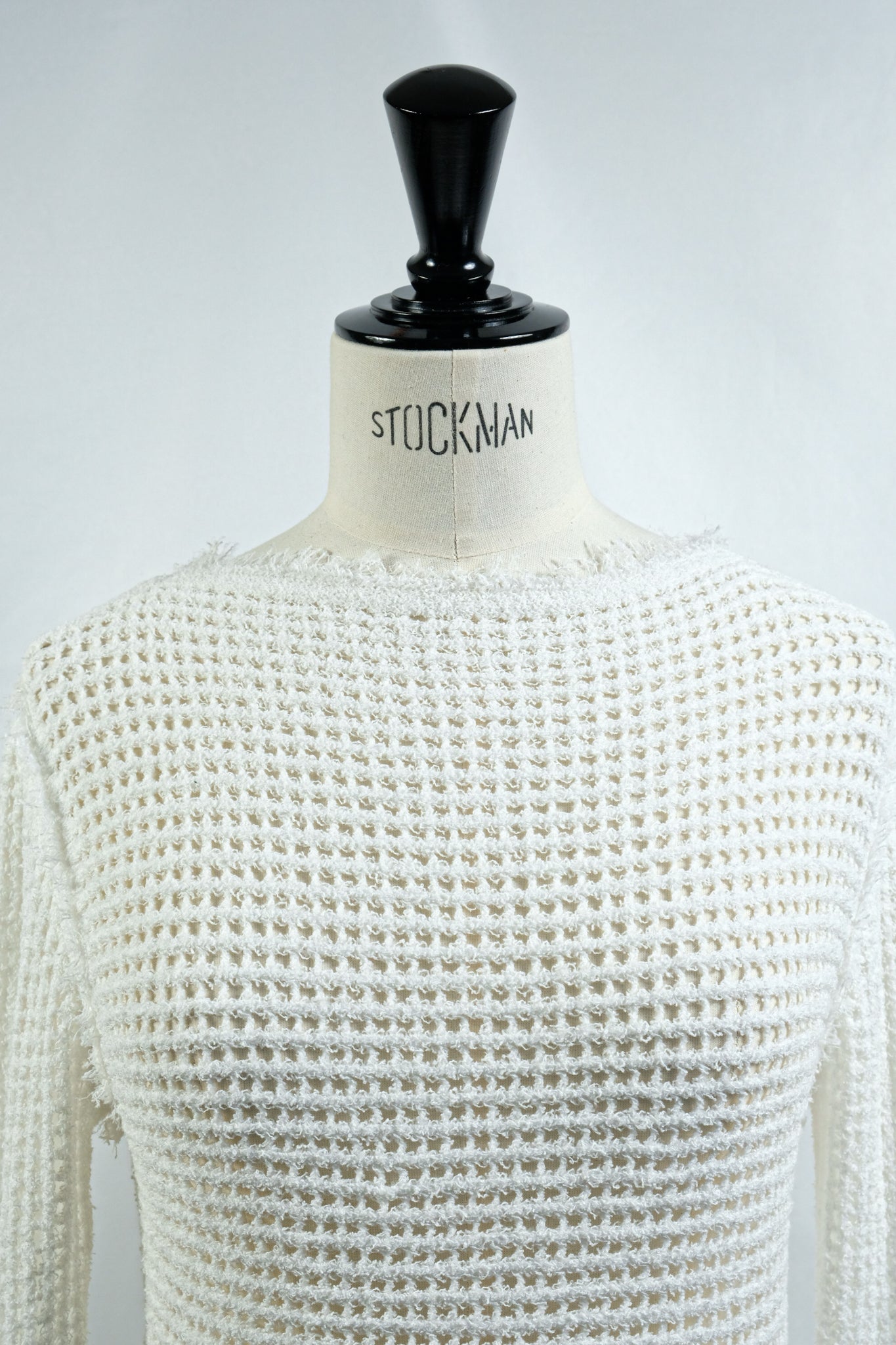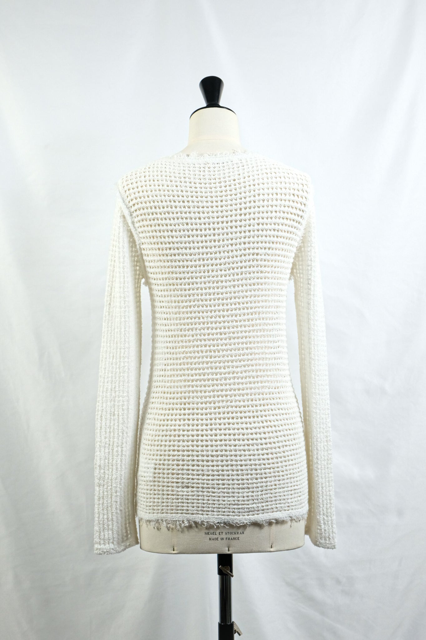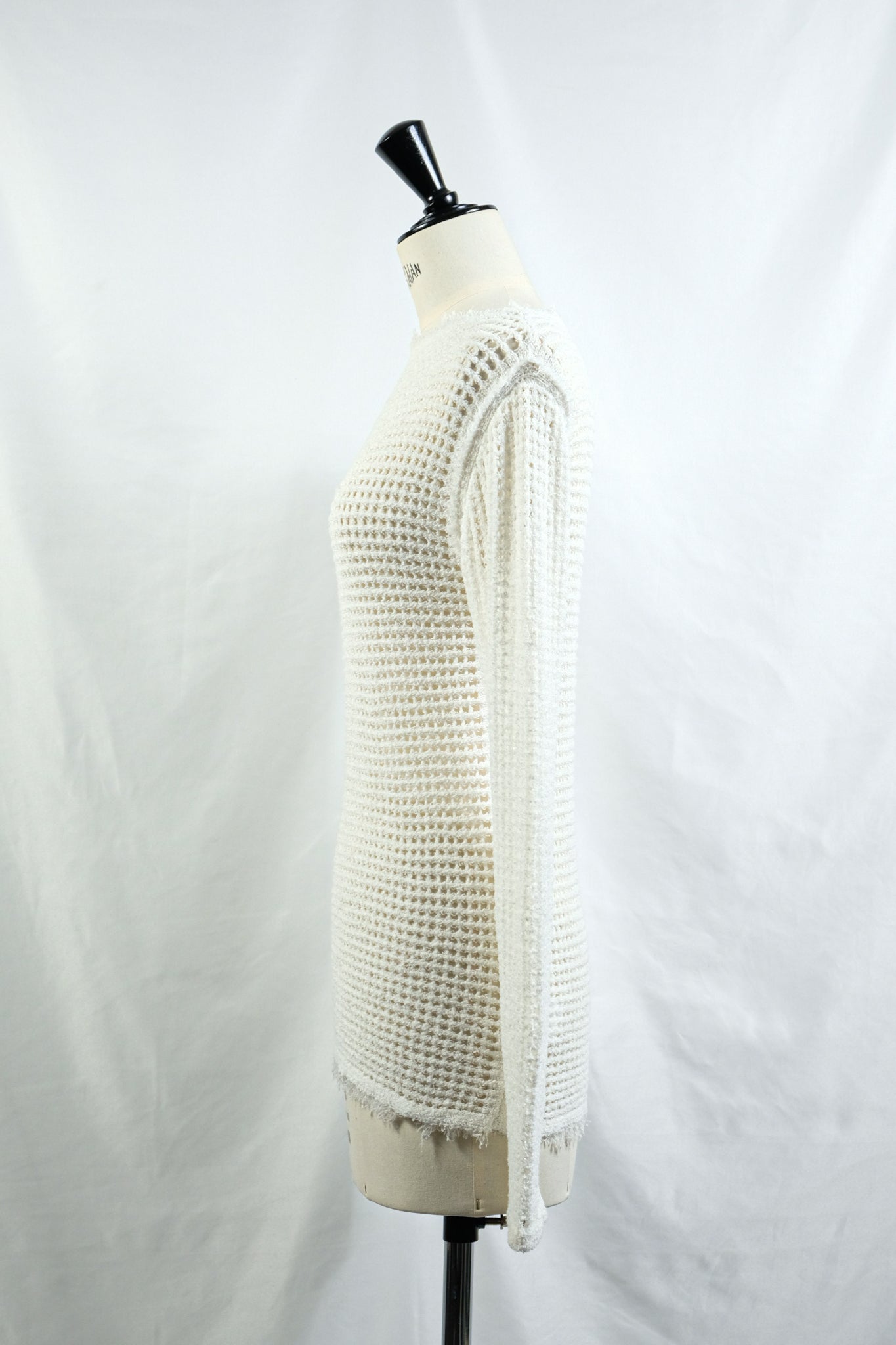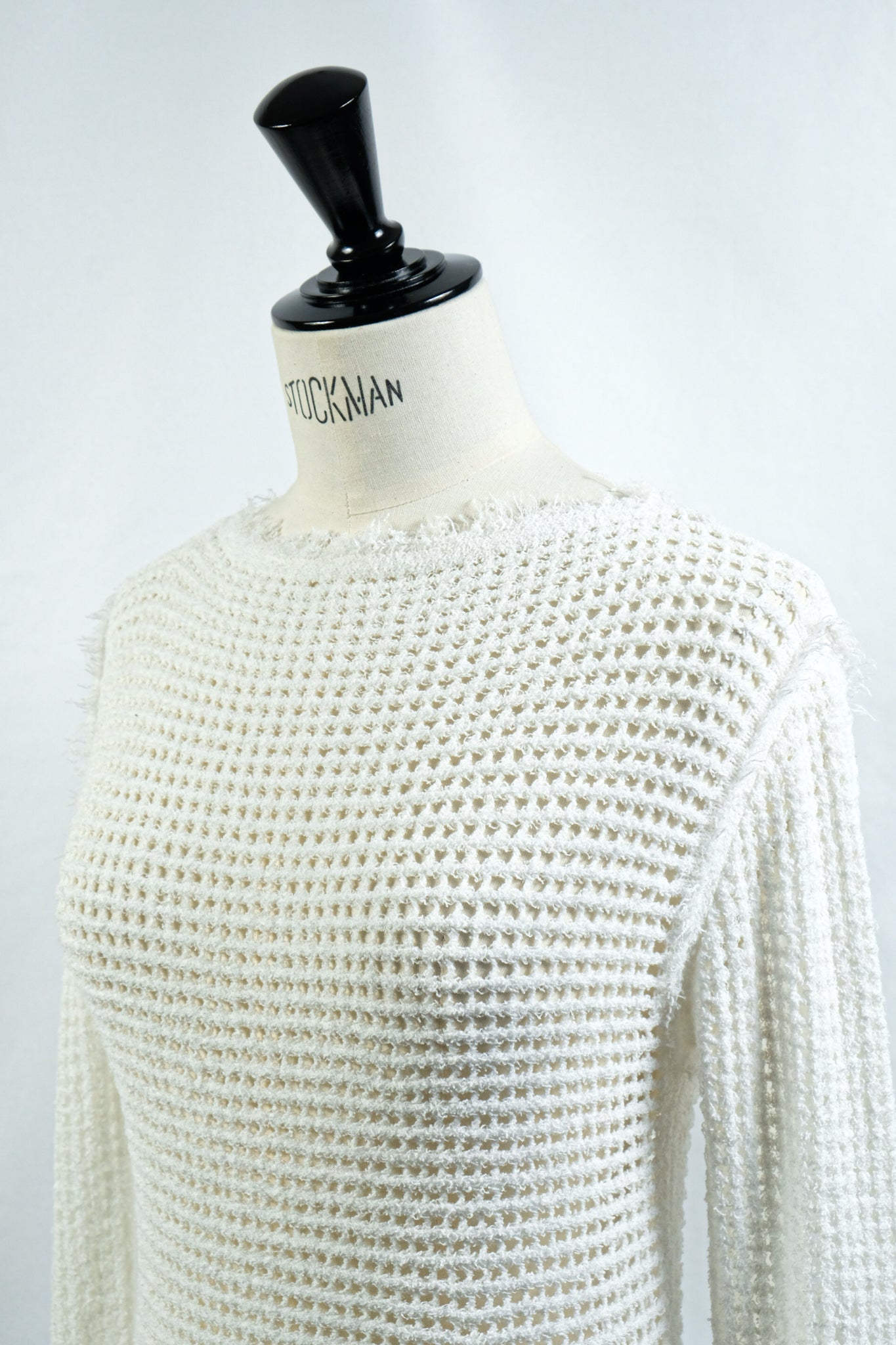 リネン混のループヤーンでメッシュ編みしたニット。