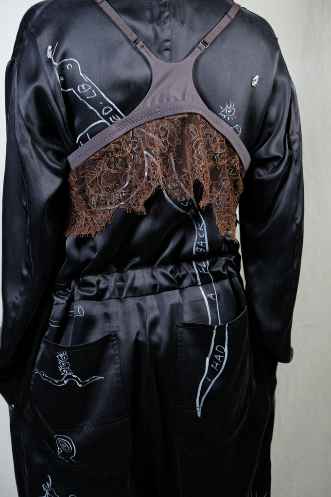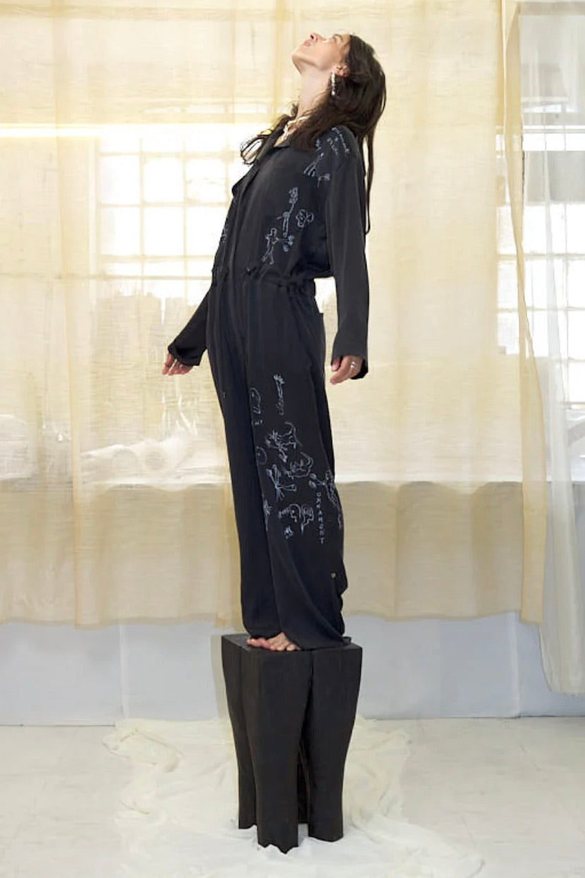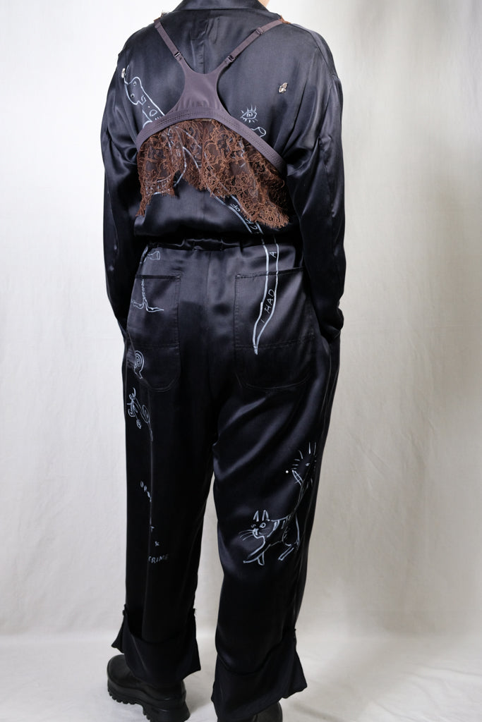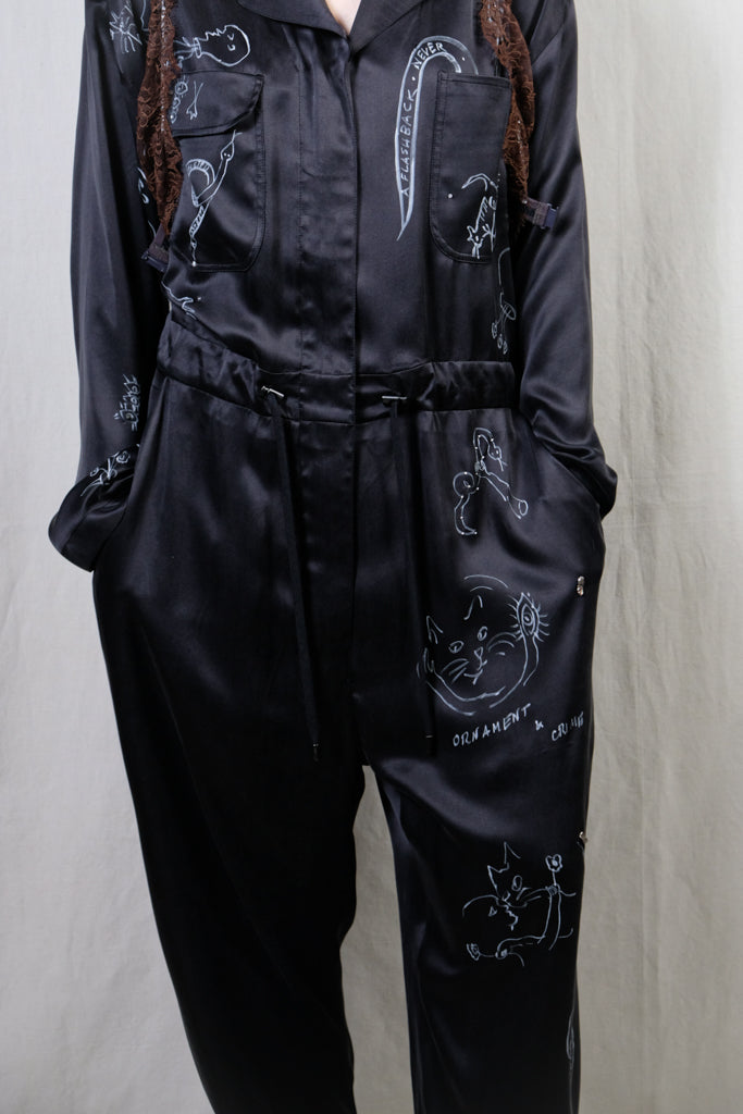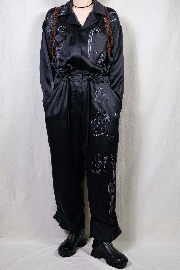 WONDEROUN "WORKSUIT W / DRAW STRING / PEARLS / SNAKE O&C DRAWING / BLACK"