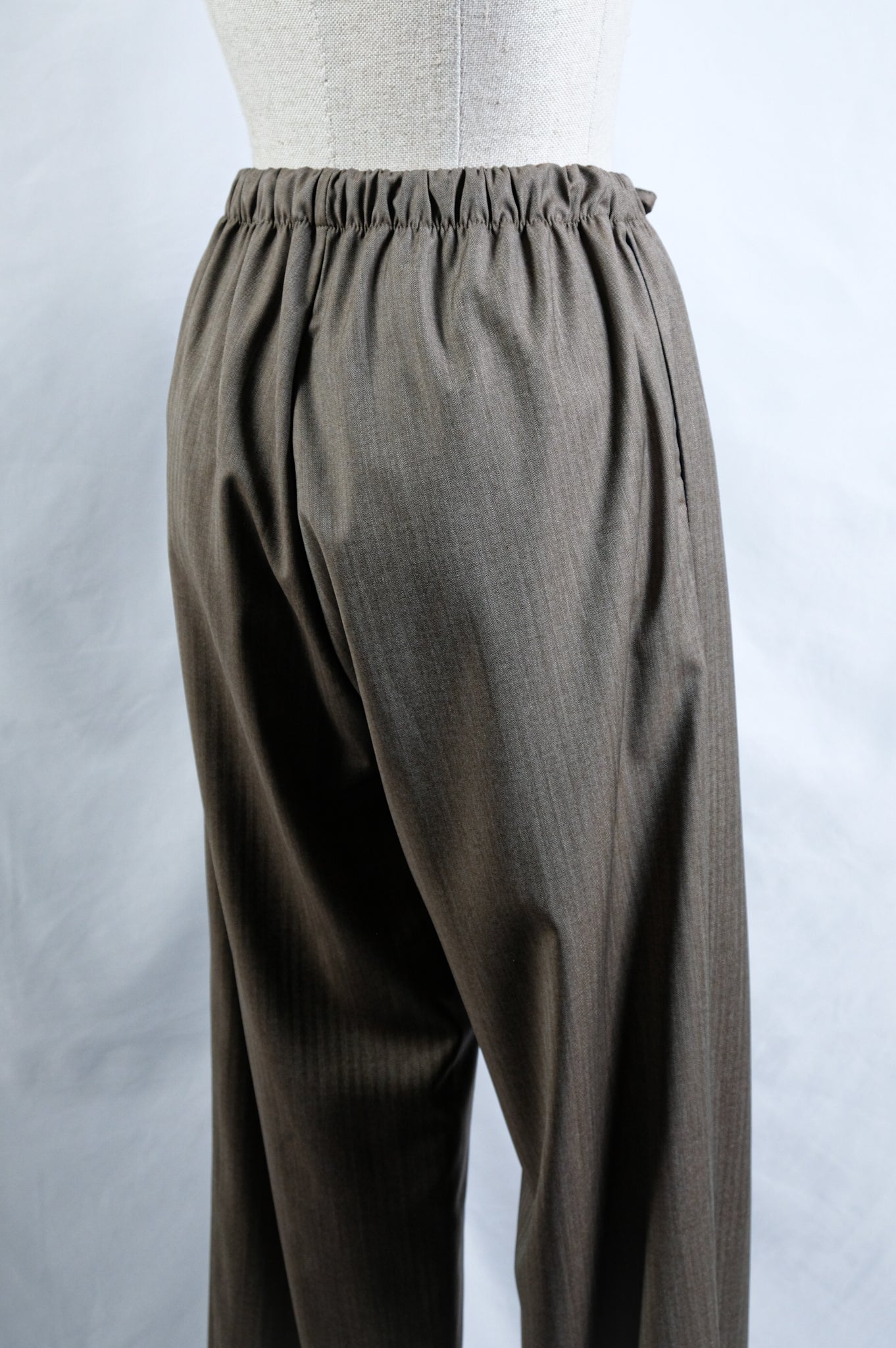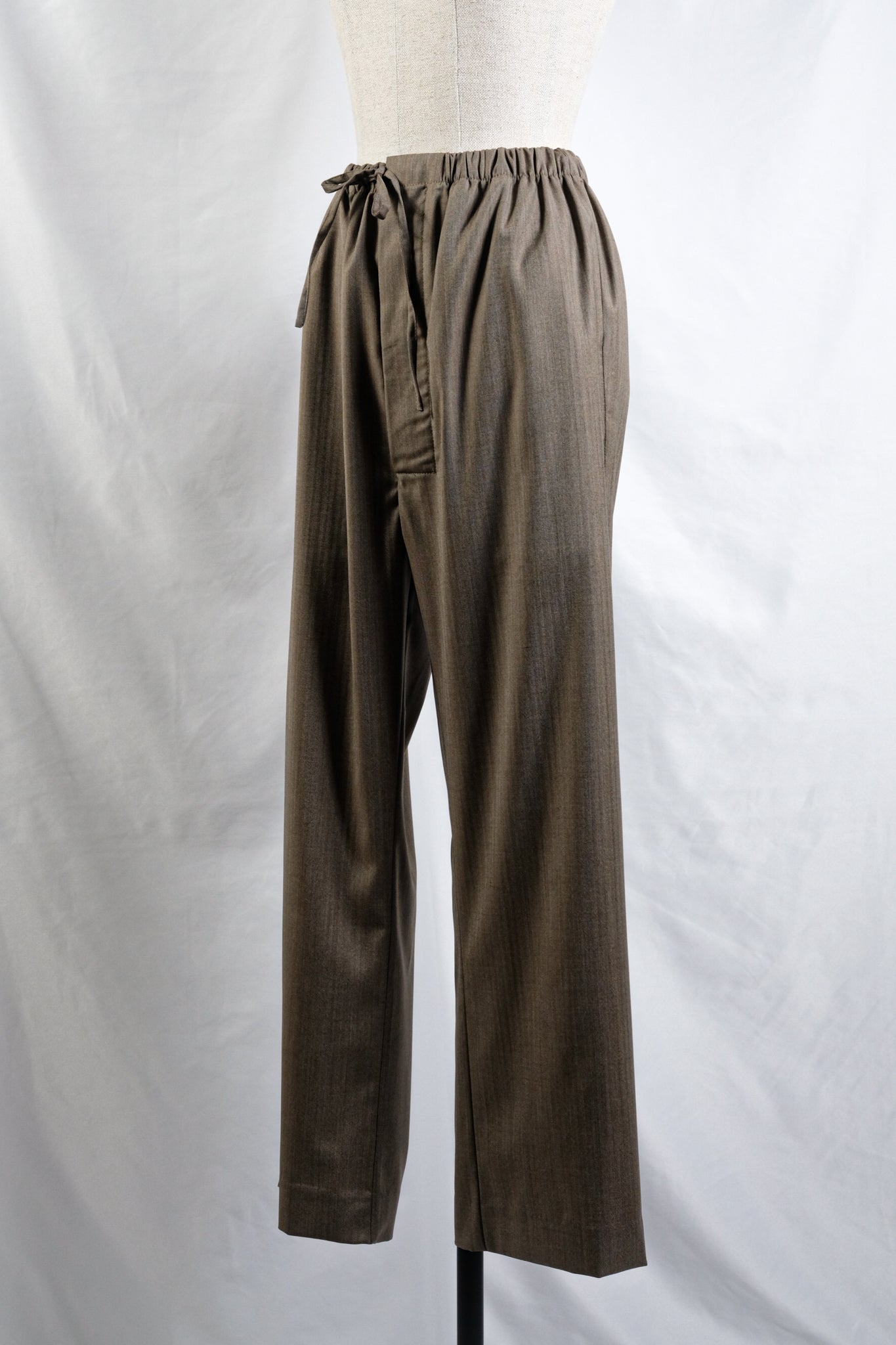 GABRIELA COLL GARMENTS "NO.288 FINE WOOL DRAWSTRING TROUSERS / BROWN HERRINGBONE"