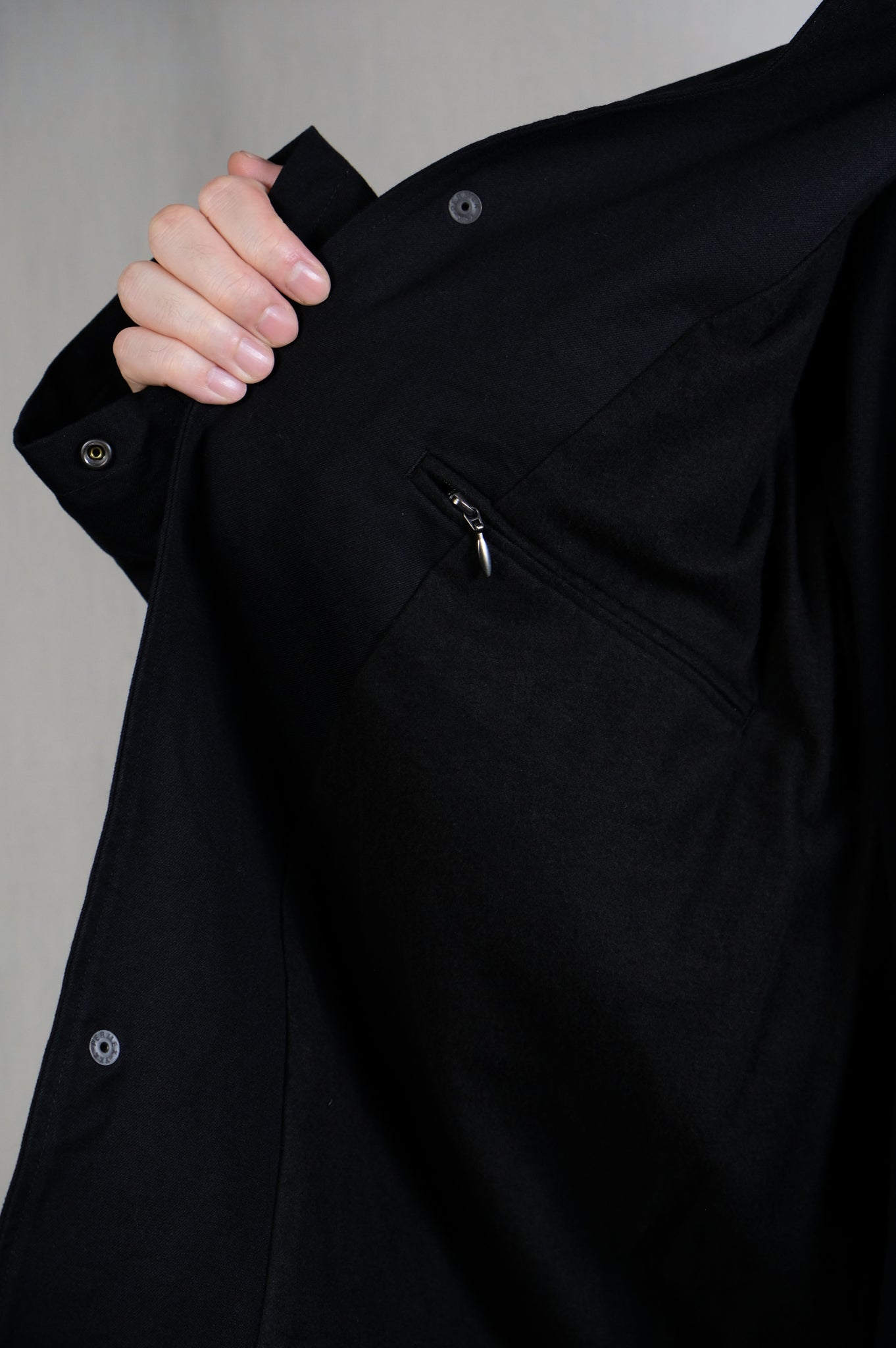 This jacket has been released before. It's a simple work jacket, but while retaining work elements throughout, it's typical of COMOLI, with excellent fabric selection and size balance. It's a generous size, so if you pair it with a thick inner layer, it should be able to withstand a fair amount of winter weather. It's relatively light, and the lining is made of cotton flannel. There are inner pockets on both chests, one of which is zippered.