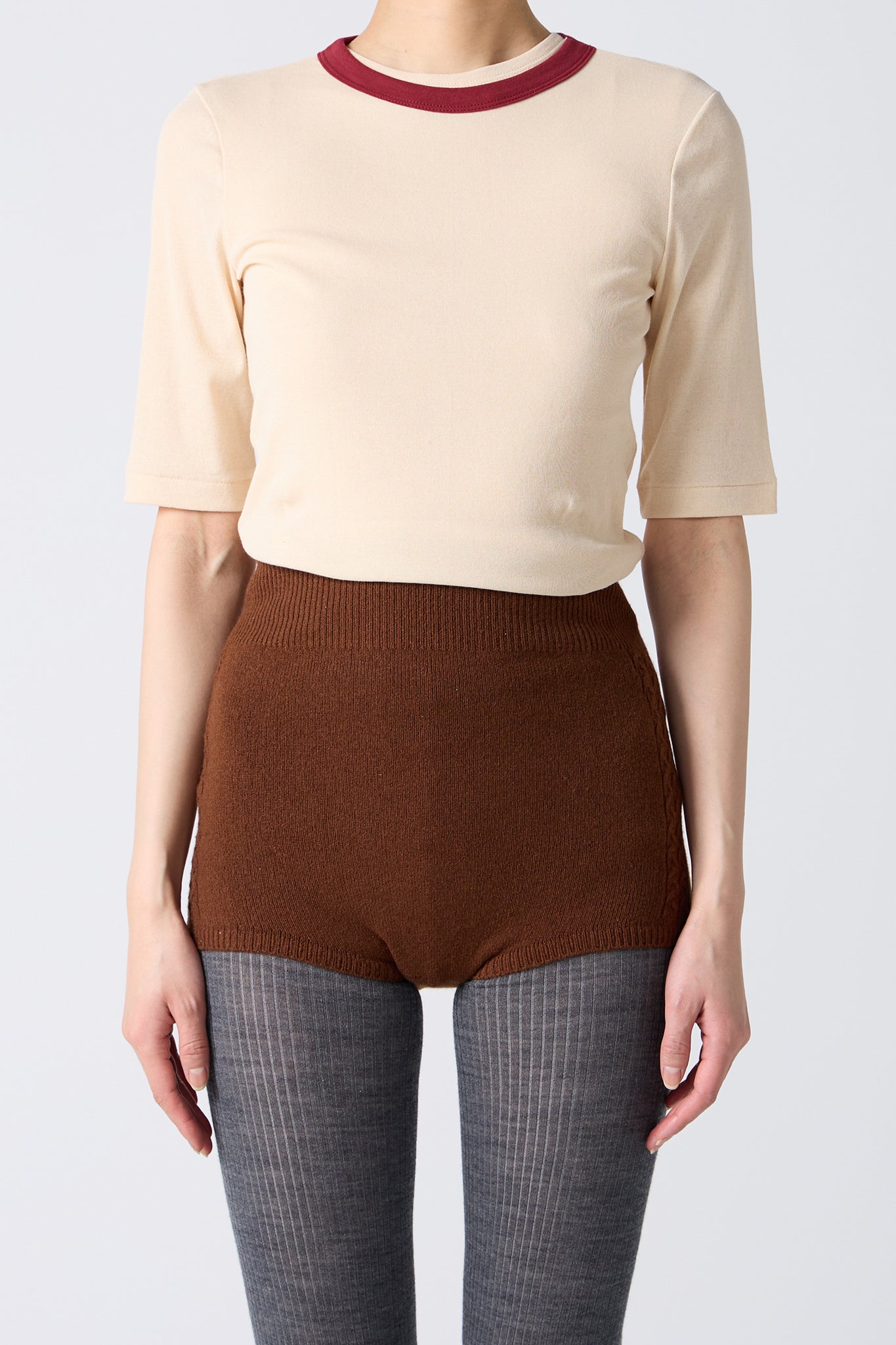 Half-length compact T-shirt.