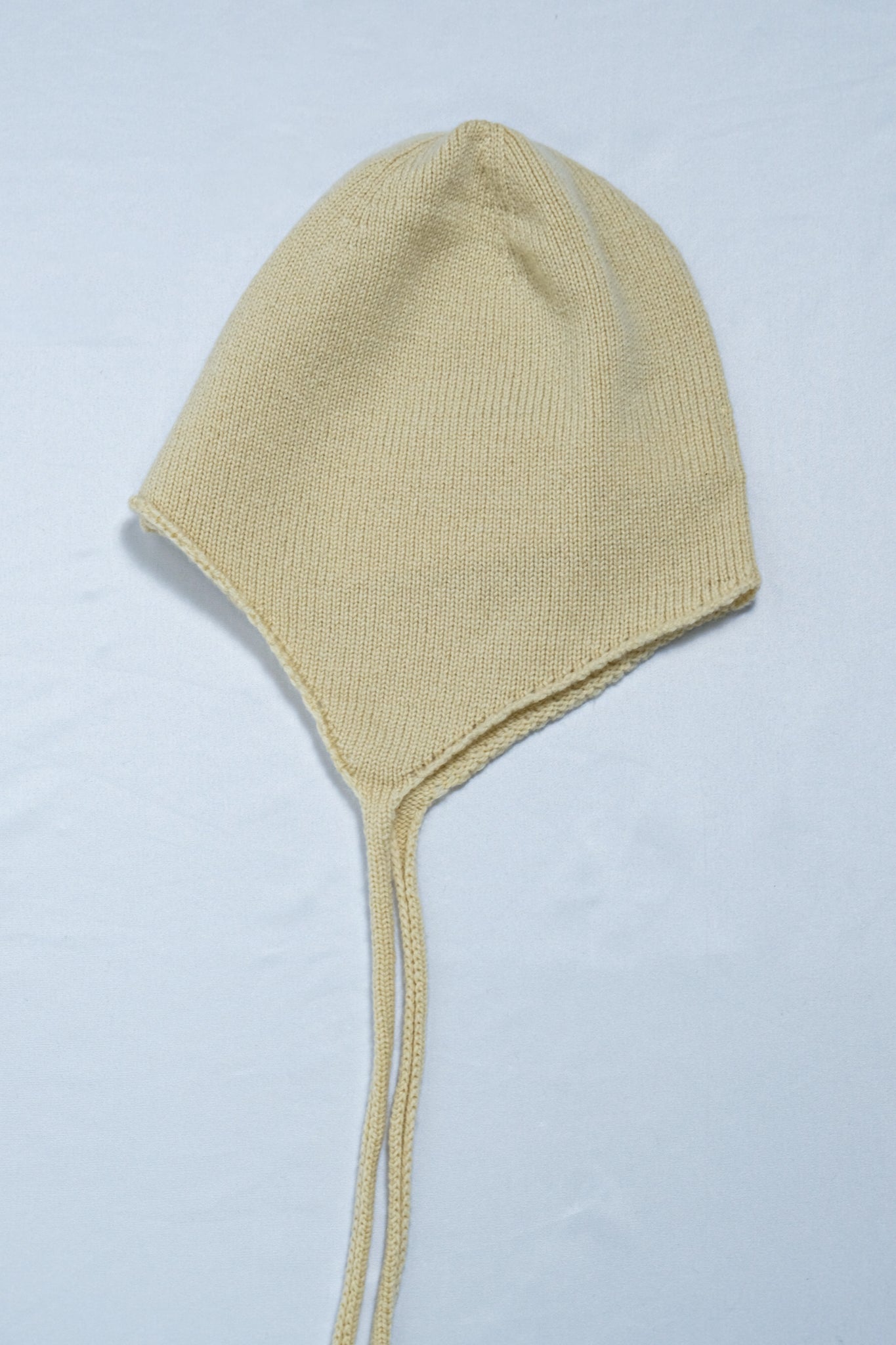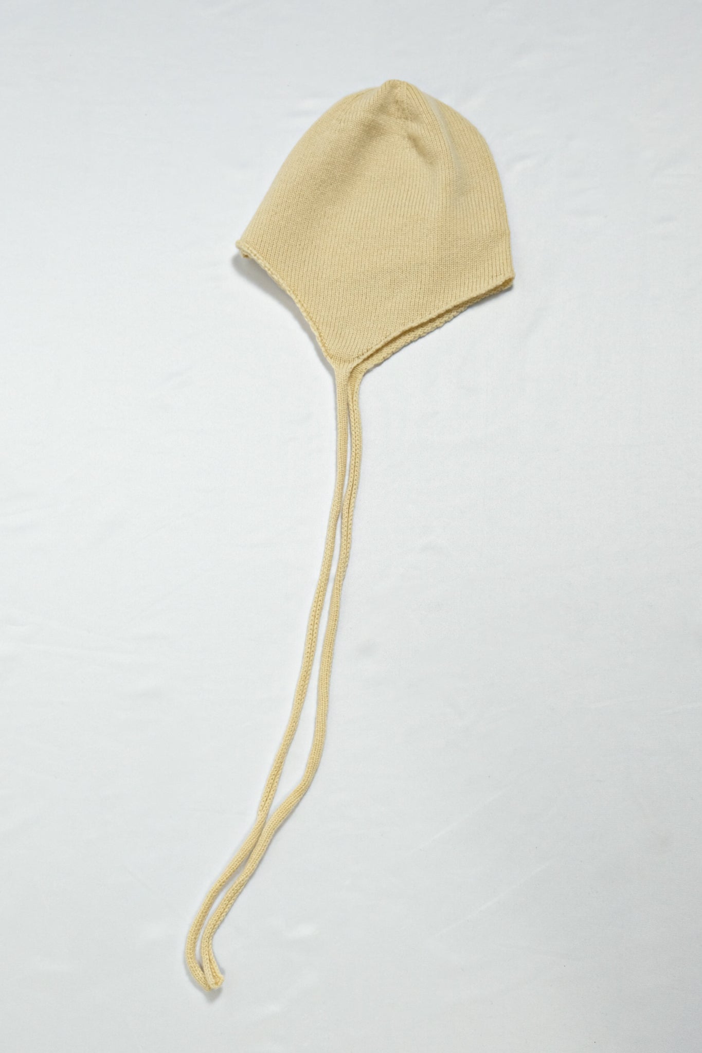 It is compact and fits comfortably on the head, and features a thin string. Whole garment knit cap.