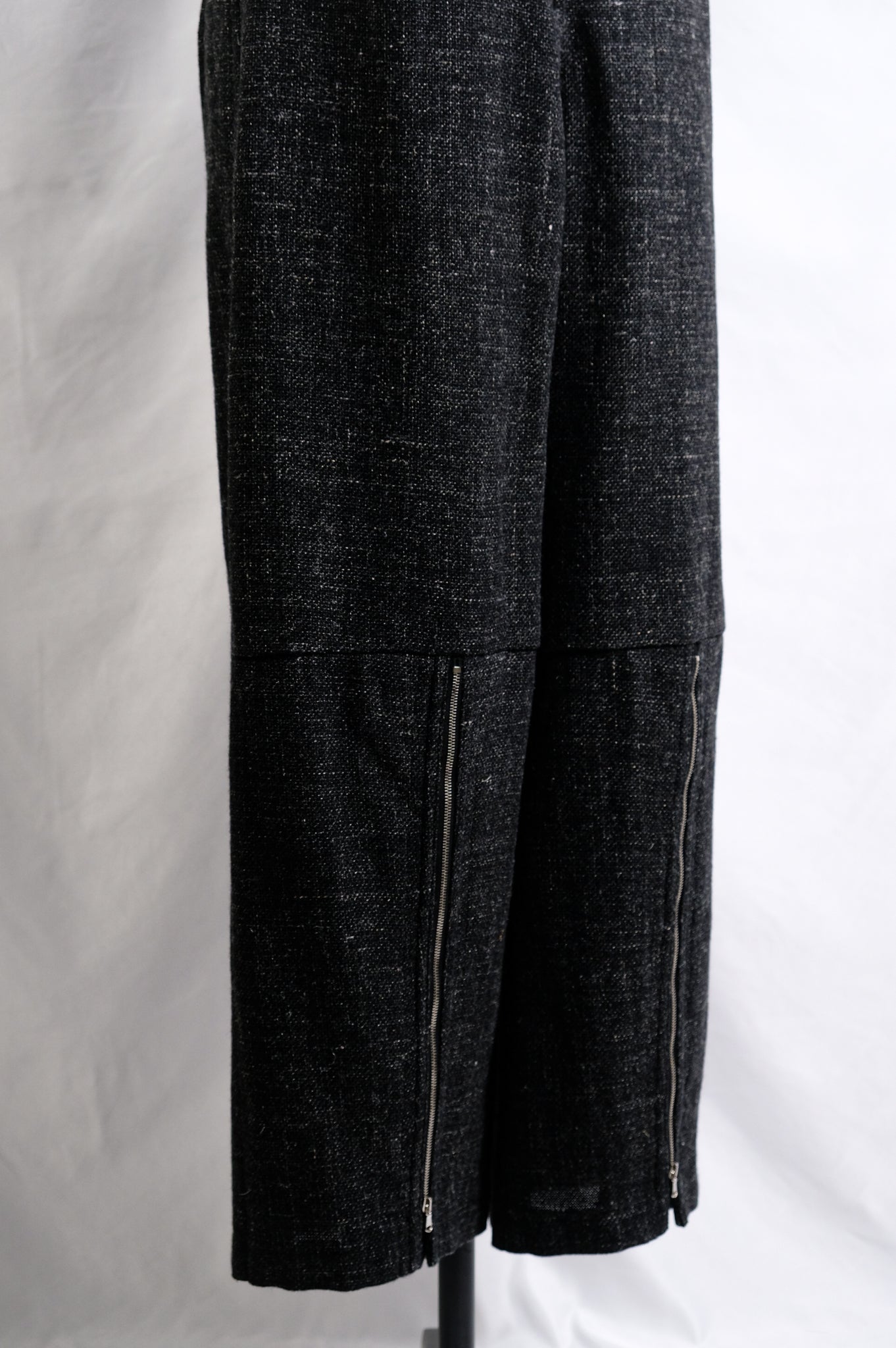 The linen wool fabric has a rough appearance compared to the woolen fabric, but has an airy and supple feel like a mesh.