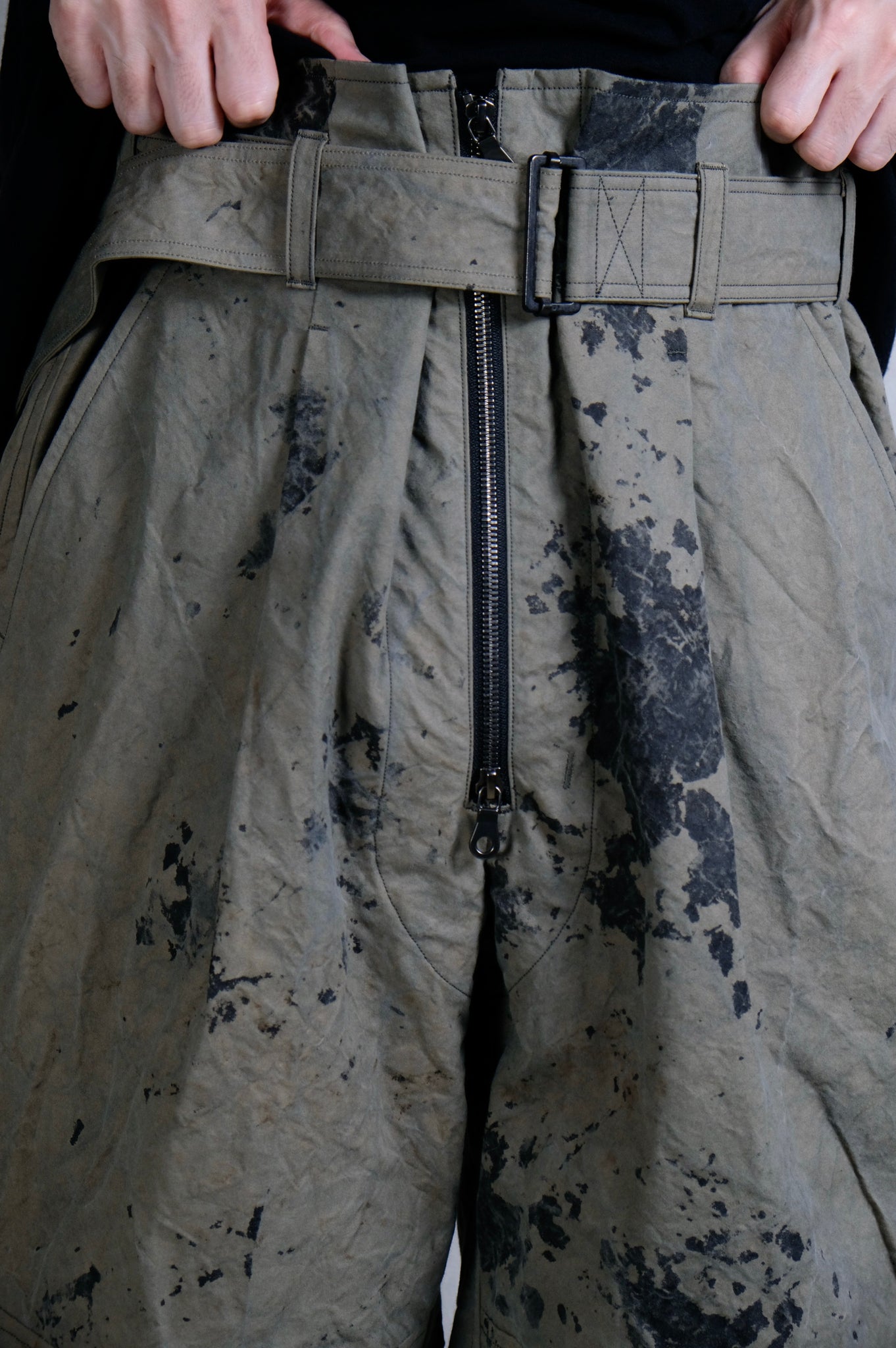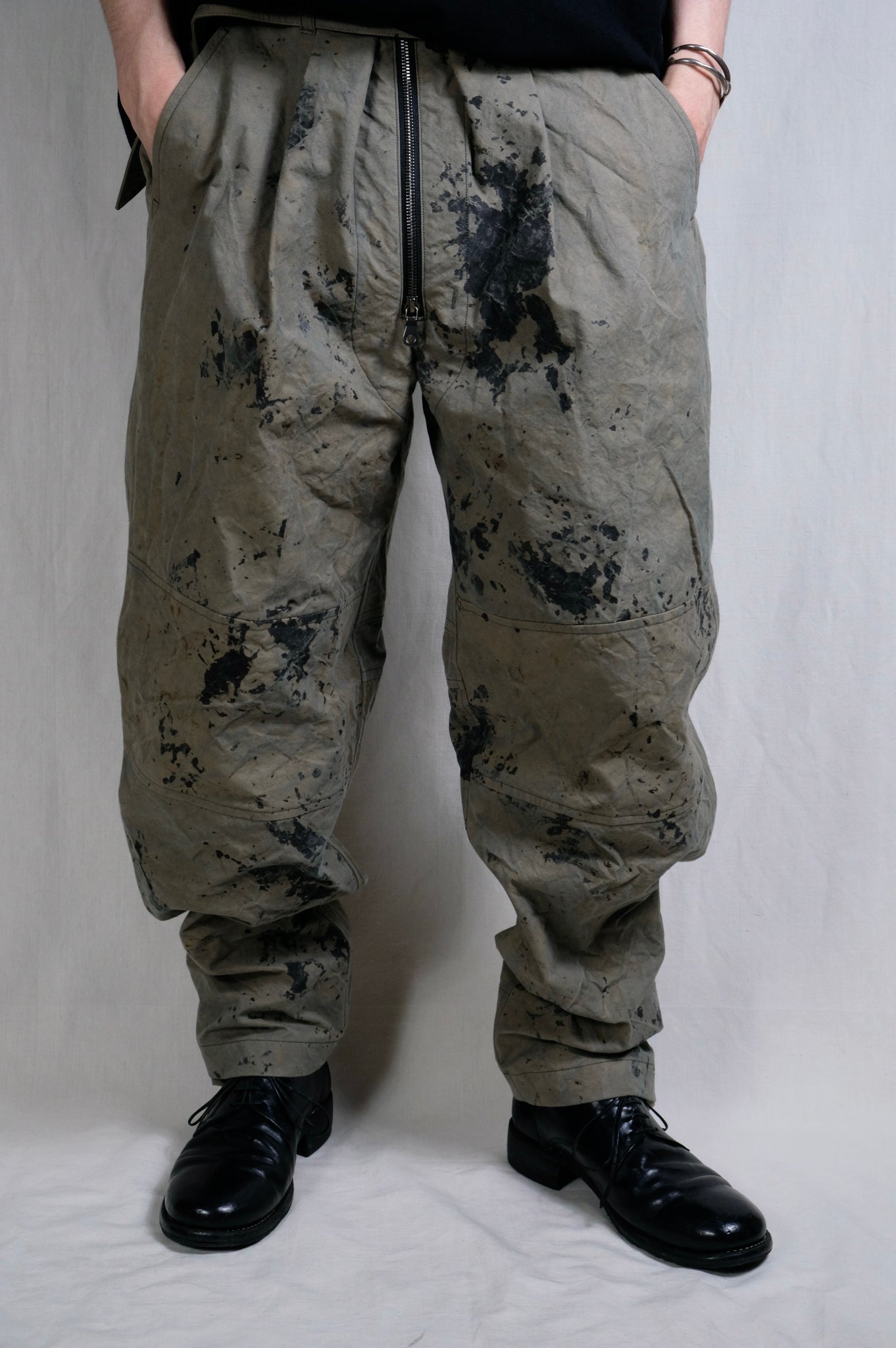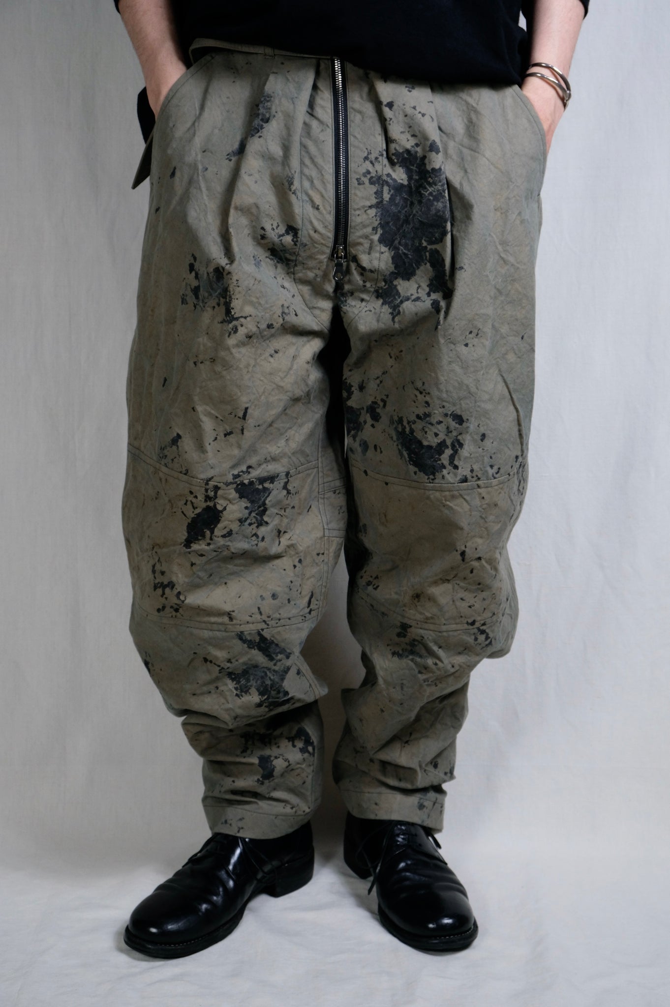 Yamauchi "No-mulesing wool, maximum density double cross, one-cut easy pants / CHARCOAL BROWN"