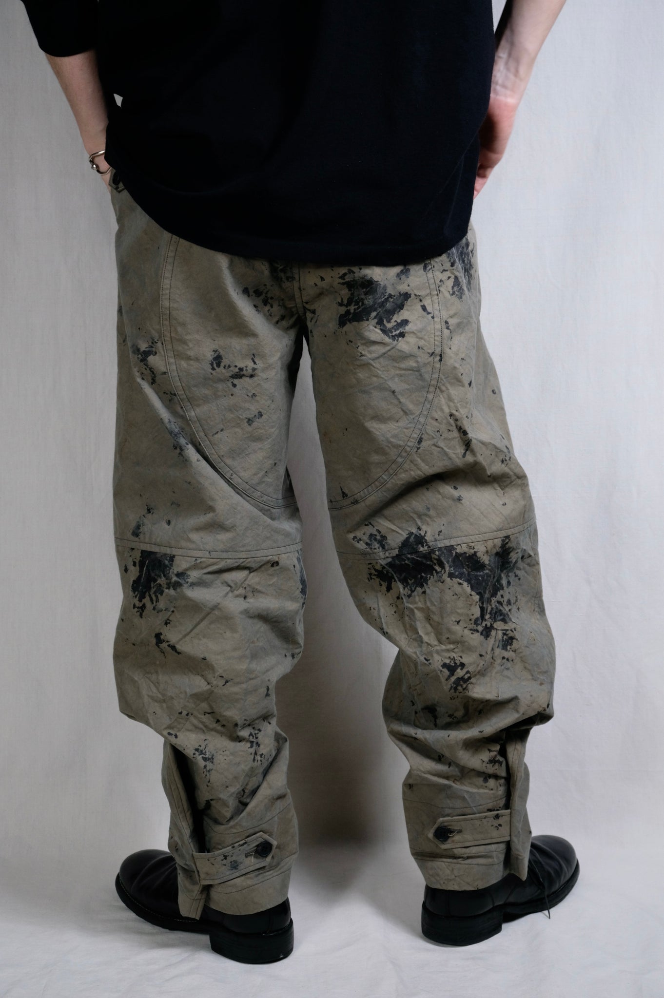 These easy pants are constructed in one cut, with a seam created in the center of the back.