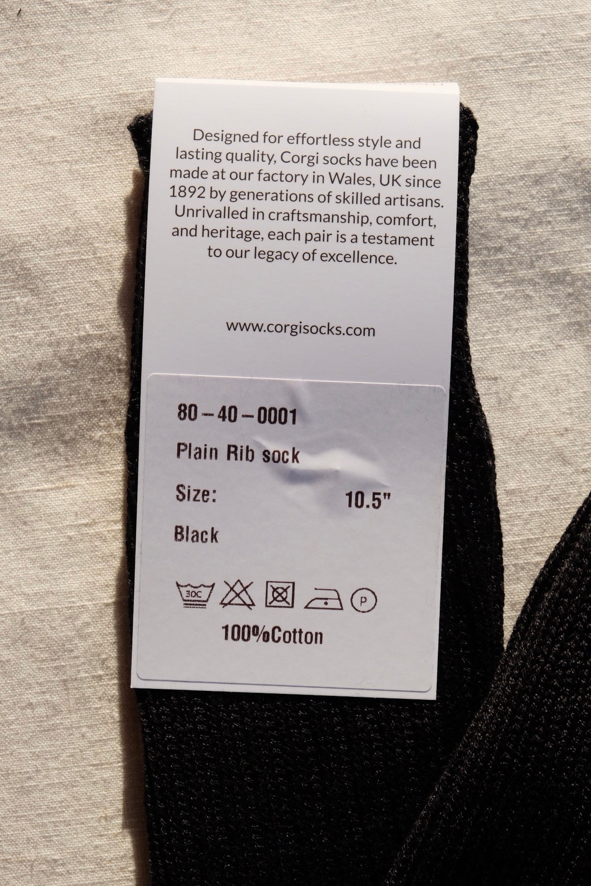 Corgi "PLAIN MERCERIZED SOCKS / BLACK"