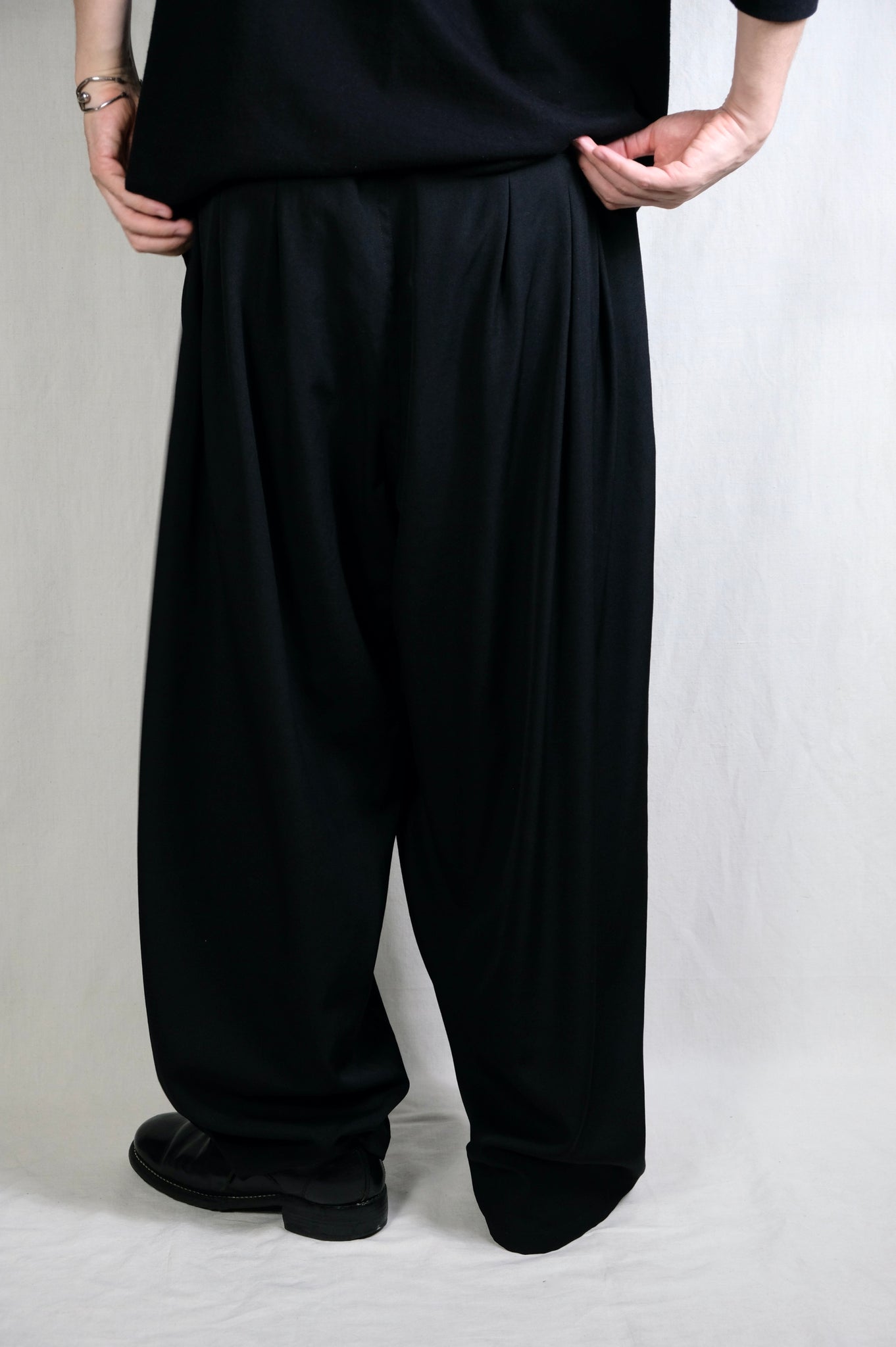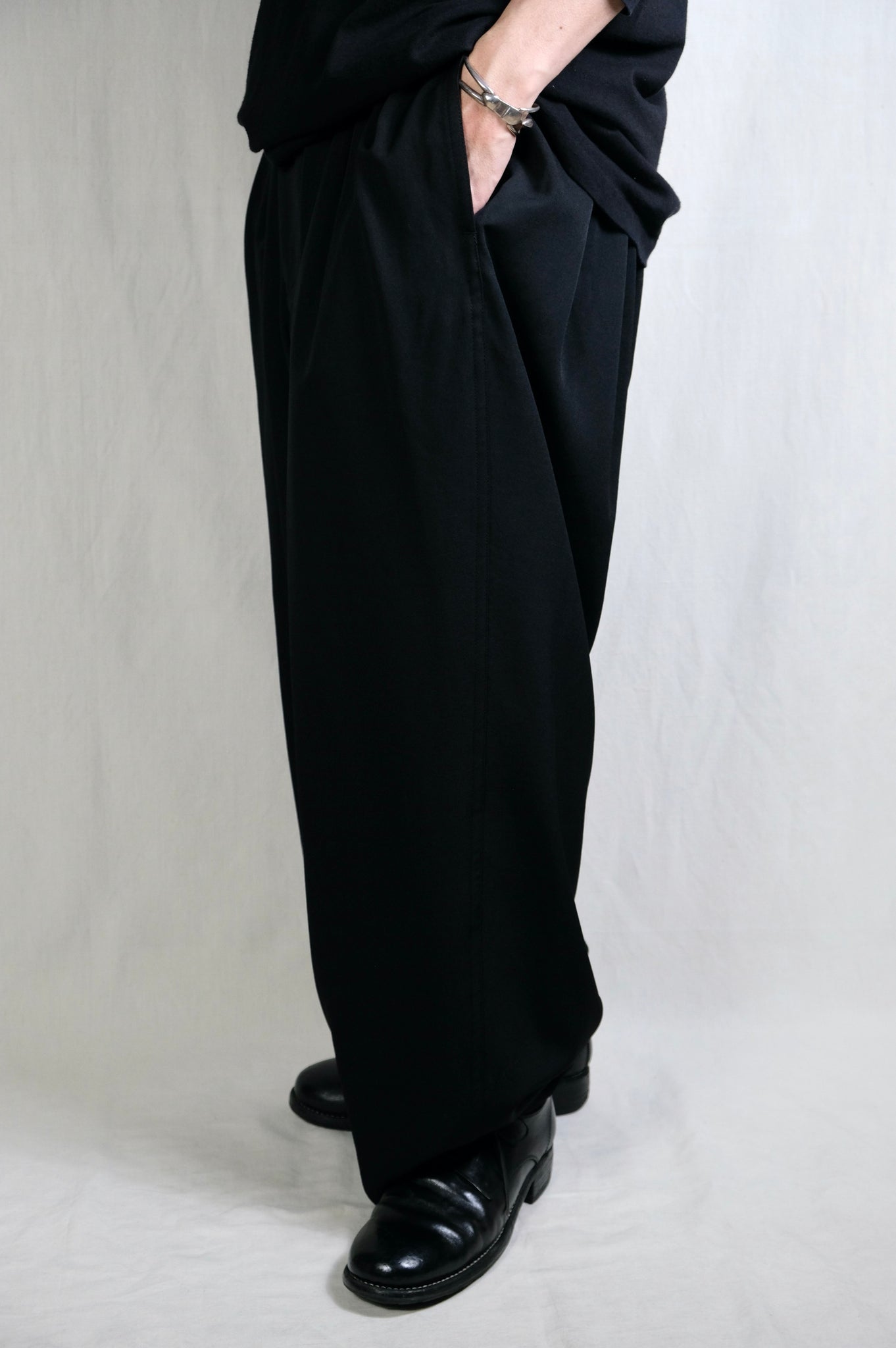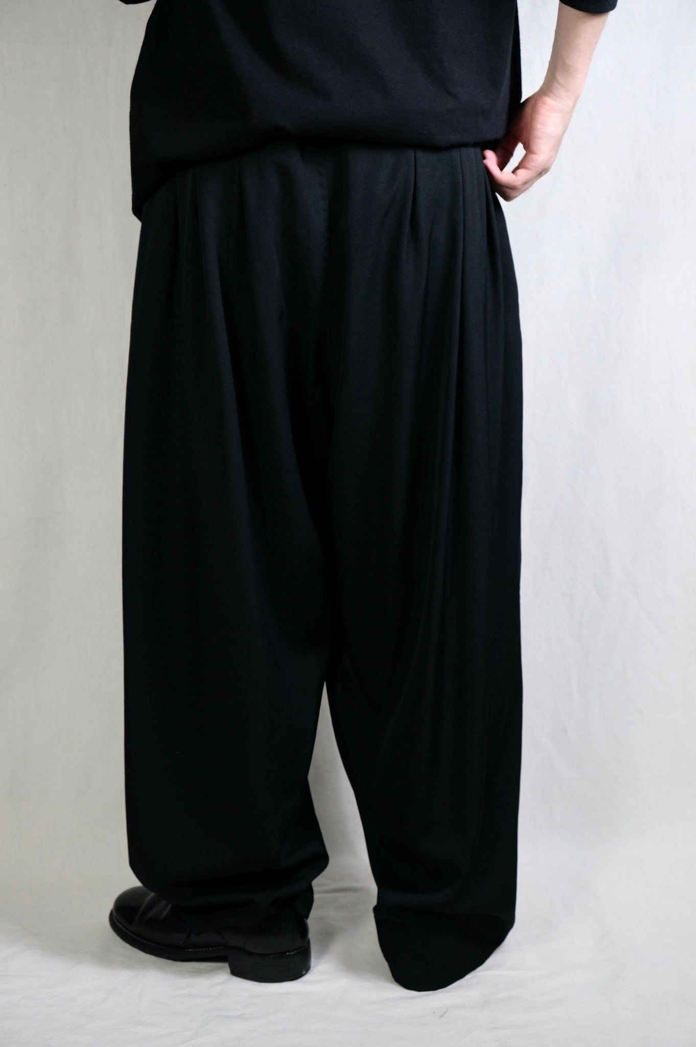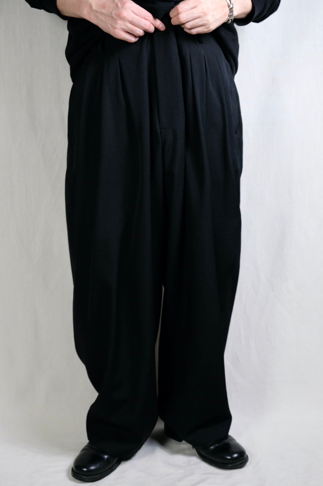 Y's for men "WOOL GABARDINE 12-TUCKS PANTS / BLACK"