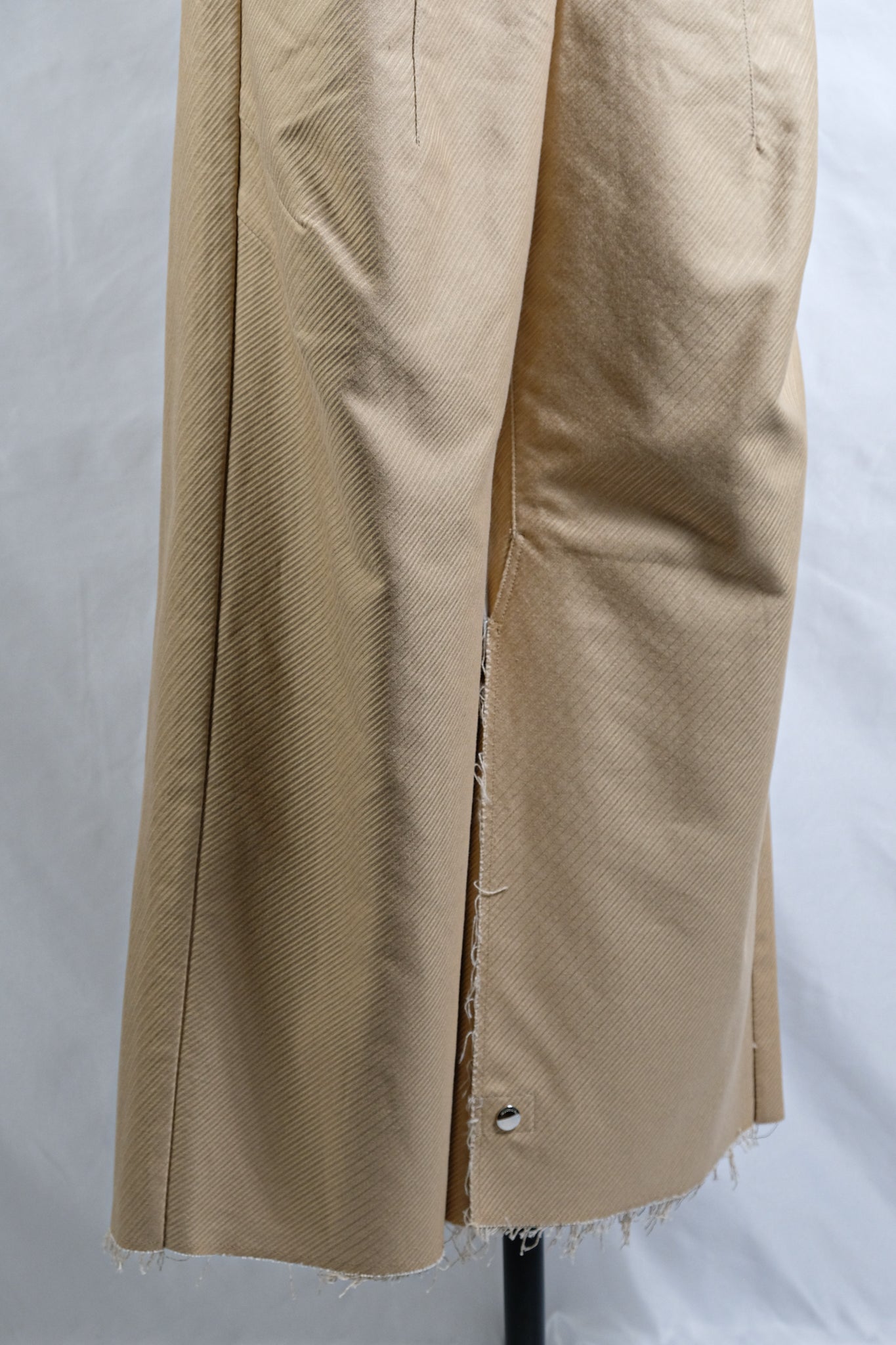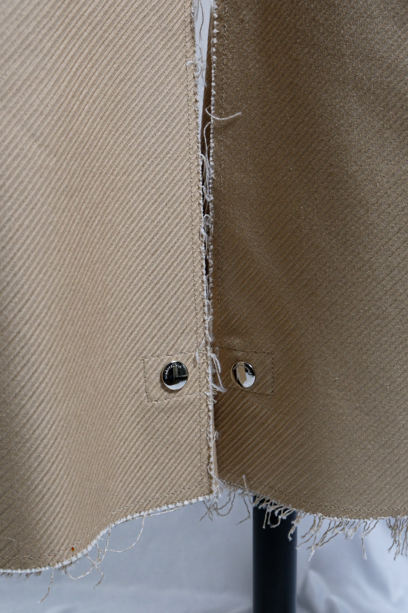 裾のカットオフのディテールにロゴ入りのドットボタンがポイント。