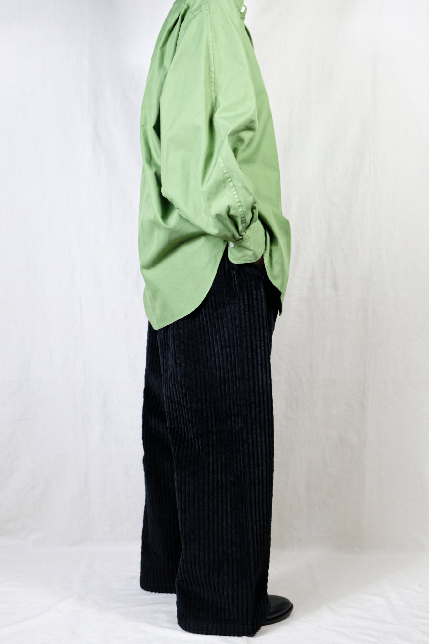 起毛感のあるコーデュロイを使用したオーバーサイズのフラップポケットトラウザーズ。